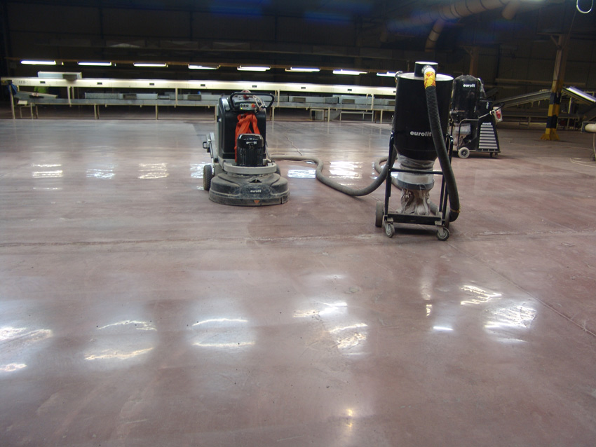 Superfloor TerrazzoSuited mostly for areas with flatness and/or esthetic issues. Eurolit uses diamond technology to deeply grind and polish the floor according to the client's needs without the use of any chemicals, dust and odor emission. During the process, aggregates are exposed revealing the natural beauty hidden inside concrete. The new floor profile is much smoother, crack free, does not produce any dust, retains its monolithic and its slip resistant properties, is immune to wheel marks and requires no cleaning agents to maintain its shiny appearance severely minimizing maintenance cost and time.