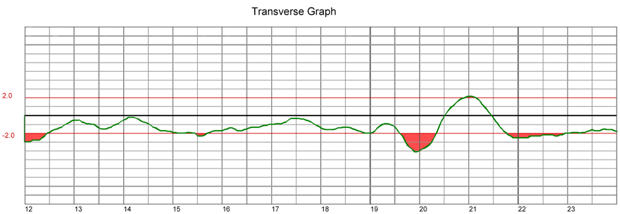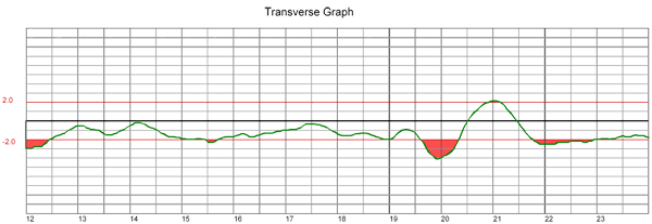 Following are survey graphs for VNA facilities. Red marks indicate the areas out of specification.